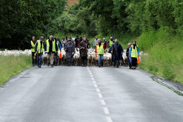 Le 12 juin, 10e étape et toujours pas de soleil bien au contraire, des trombes d'eau ! Il faut que les brebis soient solides tout comme leurs accompagnateurs ! Ce soir l'imposant troupeau a pris ses quartiers à Giou de Mamou. Demain direction Saint-Simon, et le retour du soleil pour jeudi !