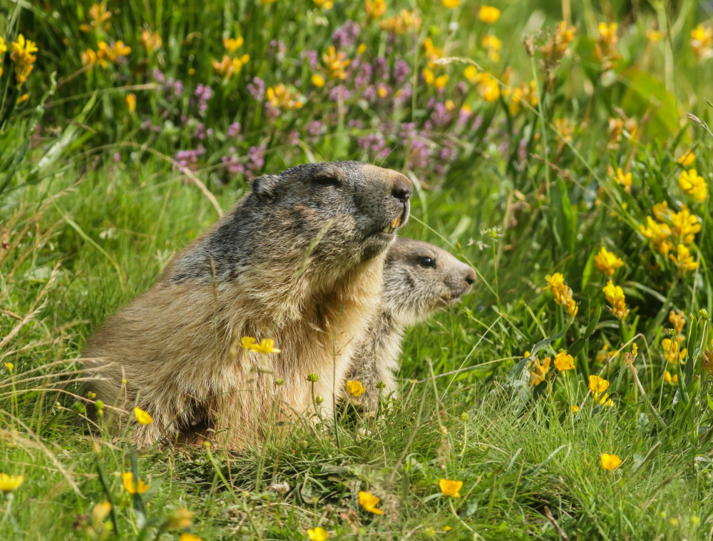 La marmotte est un rongeur fouisseur dont l’espèce la plus connue est celle qui vit dans les montagnes. Qui ne connait pas l’expression populaire « dormir comme une marmotte » ? Elle vient tout simplement du fait que la marmotte dort presque 6 mois sur 12. En effet, elle hiberne dès que les jours déclinent (octobre) jusqu’au printemps (avril), c’est sa seule chance de survivre aux rigueurs de l’hiver en montagne.