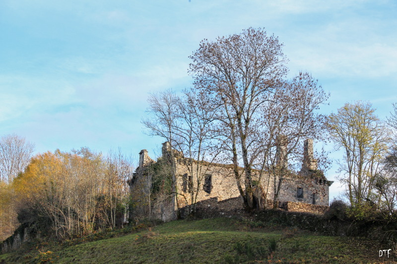 Le château qui surplombe le village de Saint-Cirgues de Malbert (église romane du XIeme siècle, inscrite aux Monuments historiques en 1978) est bâti sur un coteau rocheux adossé d’un côté à la forêt qui descend vers la Doire et de l’autre à un pâturage qui fait face au cimetière.