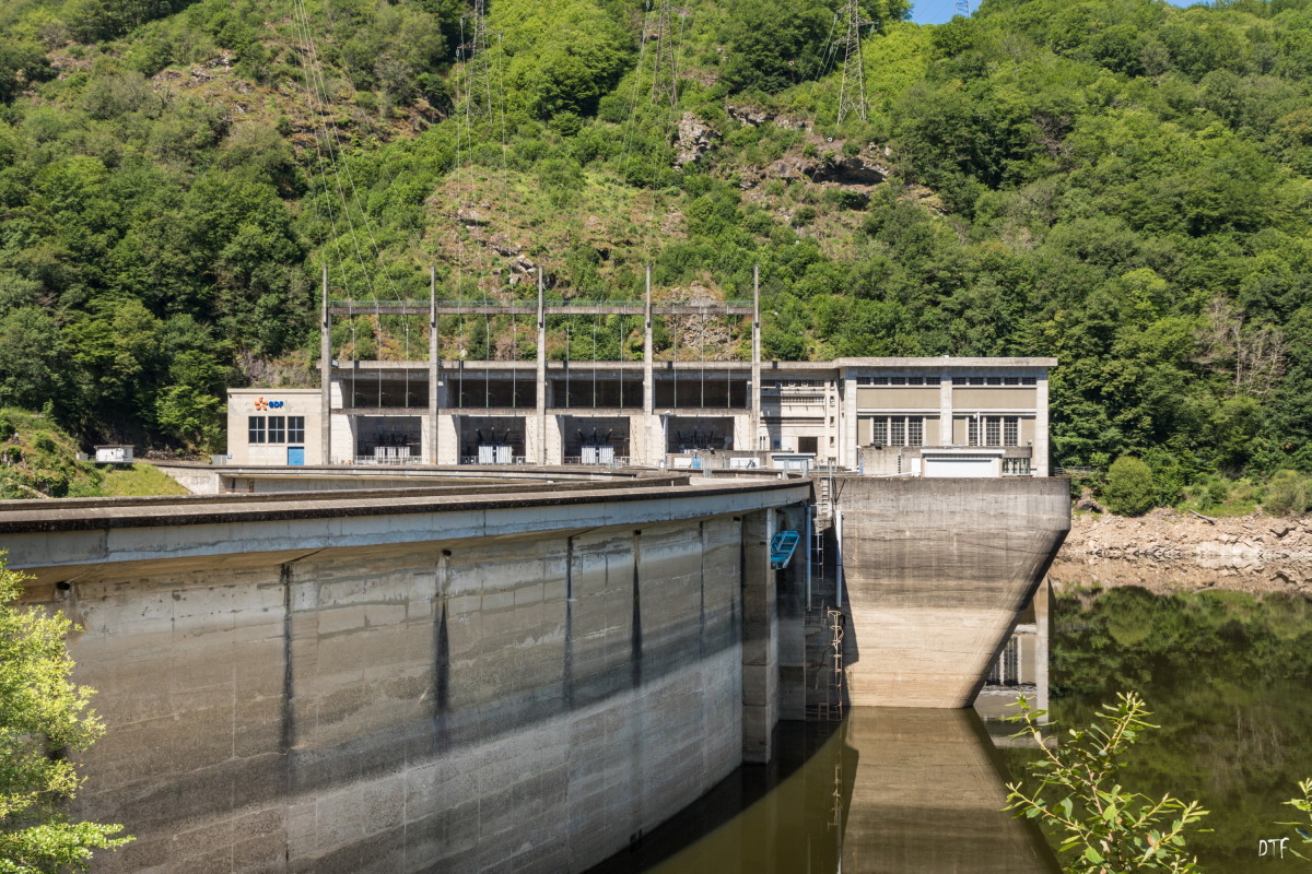 L’Aigle (nom qu’on lui a donné d’après une légende qui disait que des aigles nichaient sur le rocher surplombant le barrage), a été inauguré le 15 octobre 1945. Le groupe 4 a été mis en service ce jour même, puis le groupe 3 en 1947, ensuite le groupe 2 en 1950 et le groupe 1 en 1956. L’Aigle a été suréquipé d’un groupe déporté à 100 m en aval du barrage, appelé groupe 6, mis en service en 1982" (Source : Wikipedia).